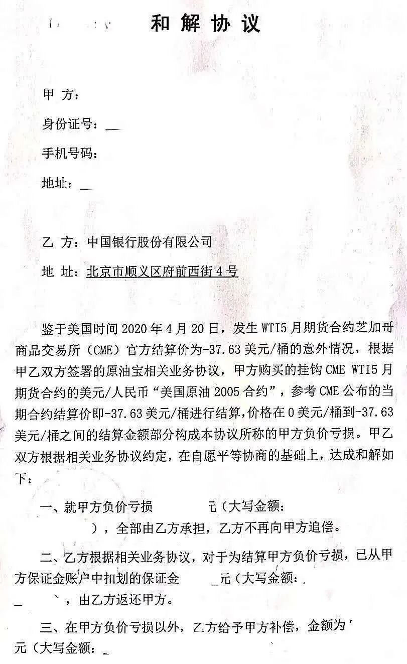 我接到电话了,中行表态不再追偿负价损失部分,同时愿意进行一定比例赔偿,算下来差不多是按4月20日晚22:00投资情况赔偿20%保证金,让我想好了去签协议,协议我还没有签。”有西南地区投资者向记者表示。从他提供的电话录音中可以听到,中行总行已将相关口径下达至基层网点,每位投资者的具体赔偿金额也都进行了清算。