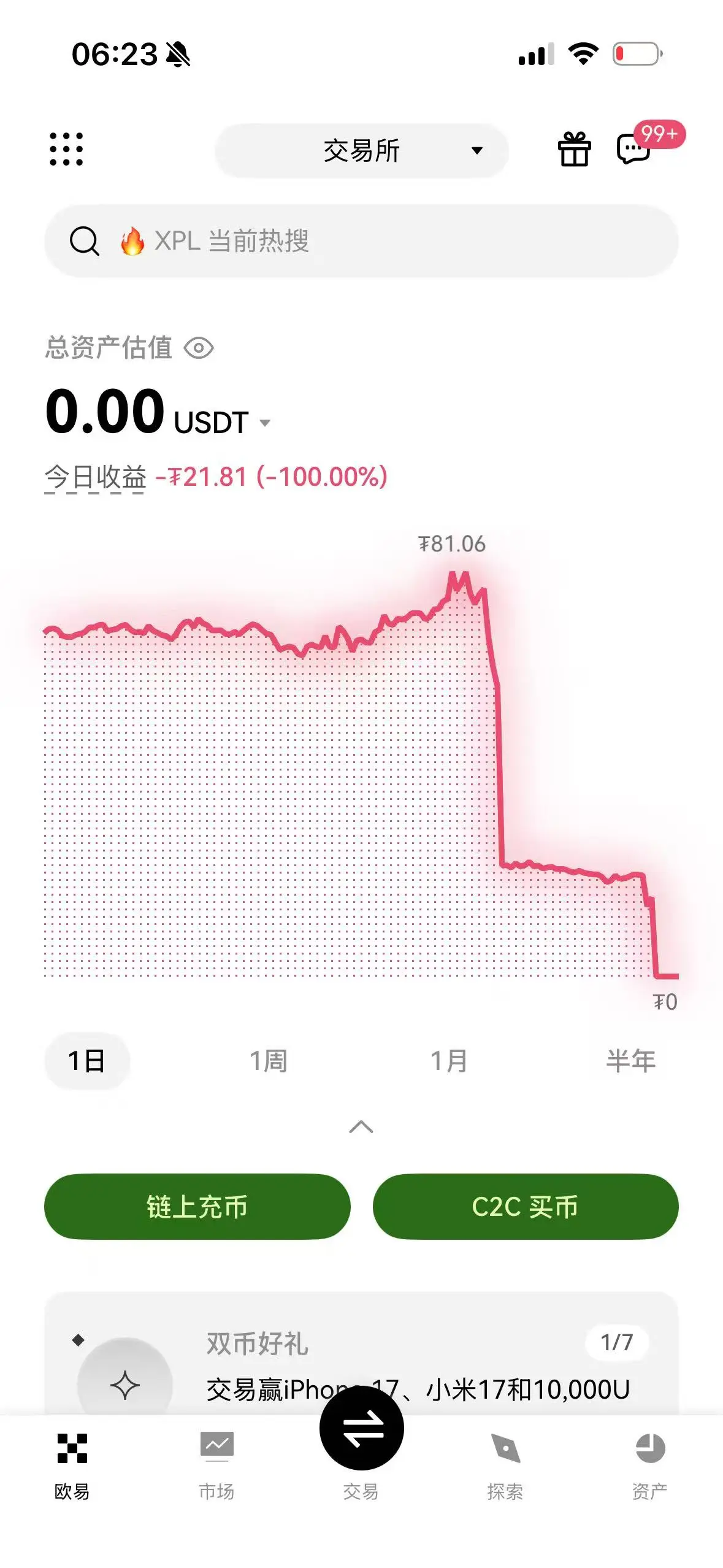 至此,欧易充值的$100 终于也是亏完(期间花$35买了梯子)
