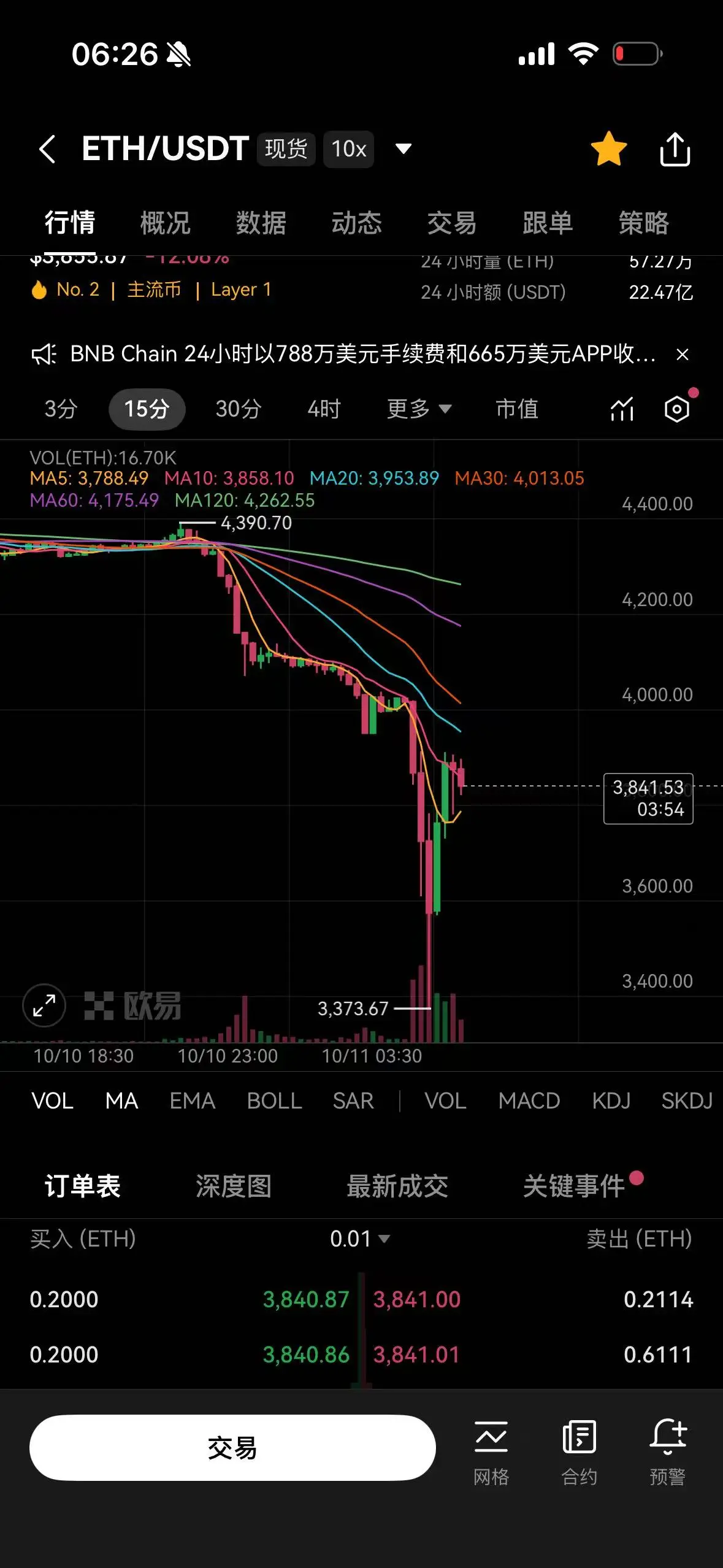 10.11 夜间 eth 从$4300 瞬间掉到 $3300 今天2025年10月13日:4,168.24